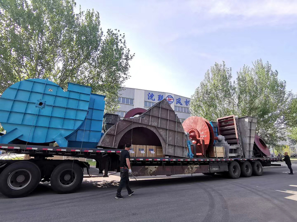 發(fā)往哈爾濱威立雅4臺220噸爐8臺引風機改造發(fā)貨現(xiàn)場